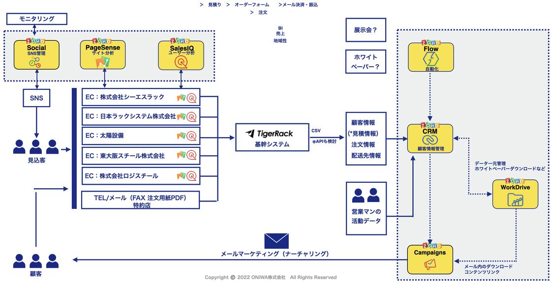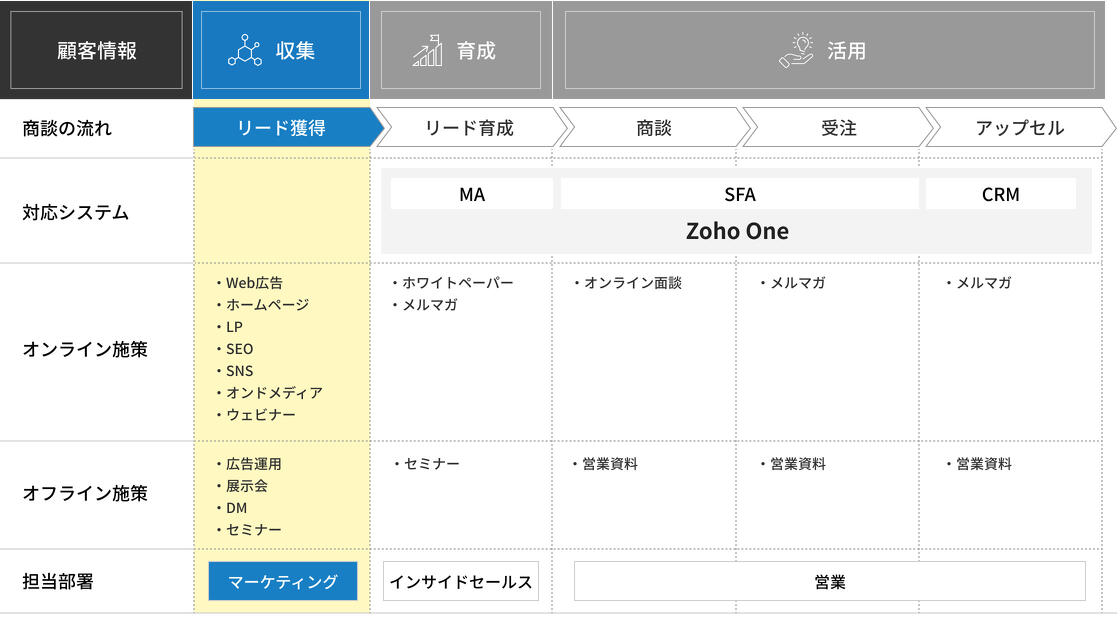 SEO施策として顧客ターゲットのニーズを満たすコンテンツを十分に用意する他、サイト訪問後に資料ダウンロードを行ったユーザーに対し、将来的にメールマーケティングが実施できるシステム(Zoho)も導入しました。