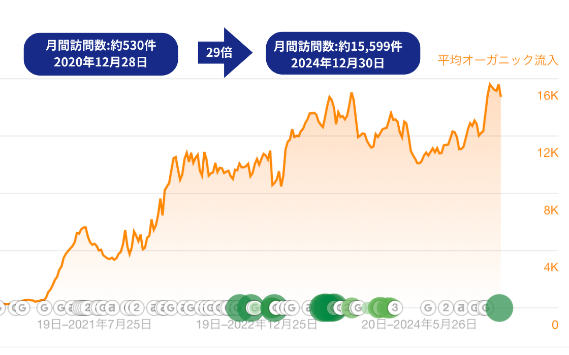 半年後の成果 リニューアル後、アクセスが約29倍になる